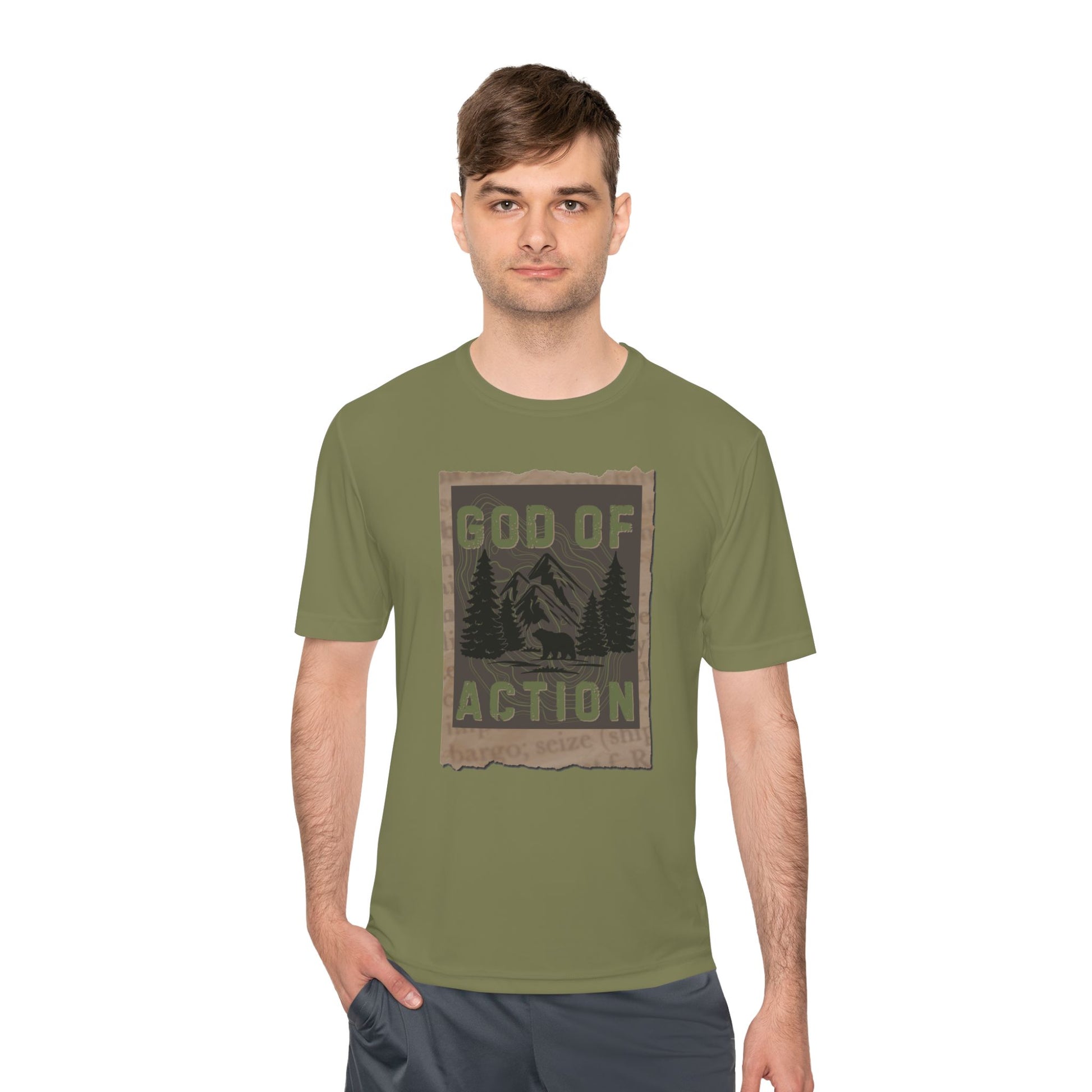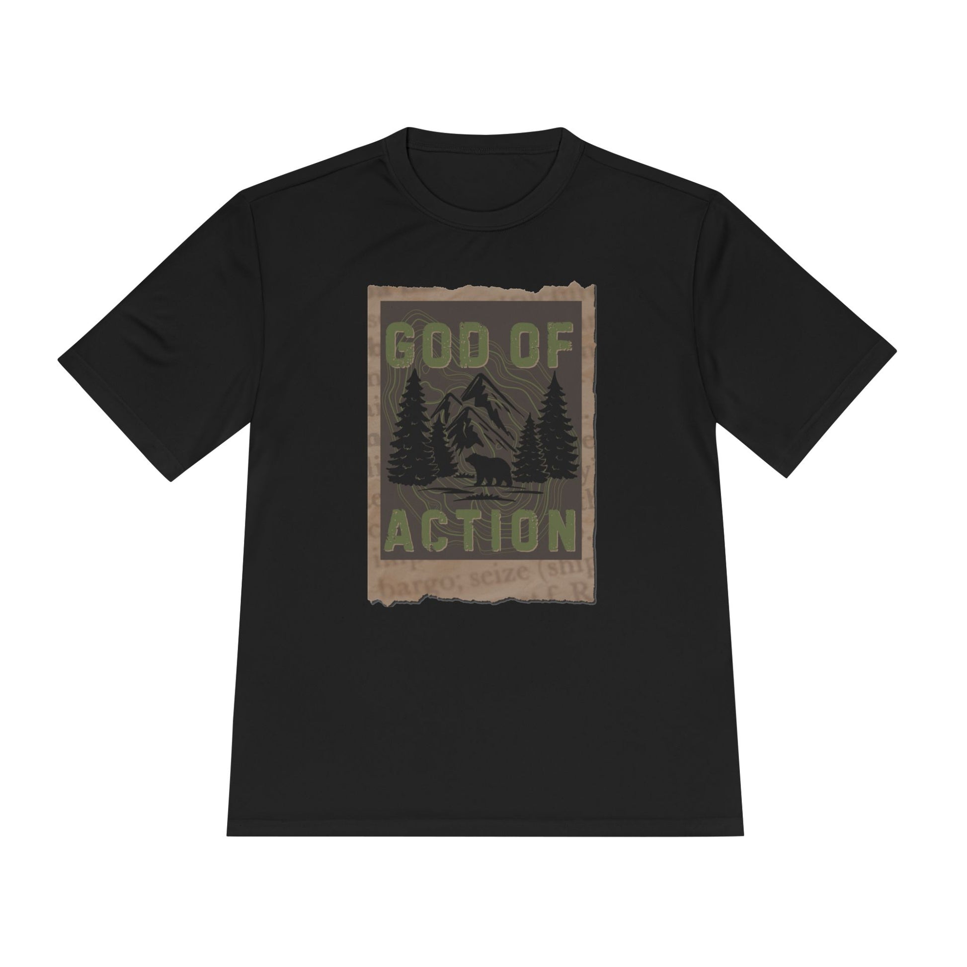 Stay active and comfortable with this GOD of ACTION Dri-fit Tee. Made of 100% Polyester, this moisture-wicking tee is perfect for workouts or casual wear. The direct-to-film print adds a unique touch to the design, while the self fabric collar and side seams provide durability and structural support. Ideal for fitness enthusiasts and those who enjoy bold designs, this tee is a great choice for sports events, gym sessions, and outdoor activities.